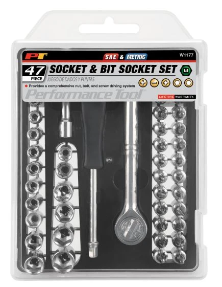 - Wide range of standard sockets and bit sockets in SAE and Metric sizes