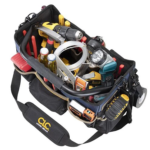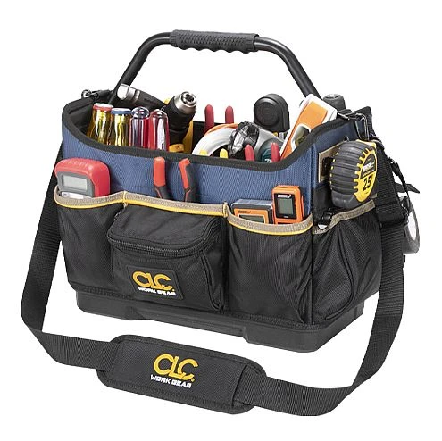 CLCs 15 in Molded Base Open-Top Tool Bag, is durably designed for longer wear and tear. Constructed with 1680D ballistic polyester and a tough molded base, this bag is ready for heavy handling. Its main section is 15 in long for small power tools, larger hand tools, boxes of nails/screws and other job essentials. Plus, the ergonomic sturdy handle rotates from side to side for full access without any obstruction. Get more rugged and organized with CLC Work Gear today.