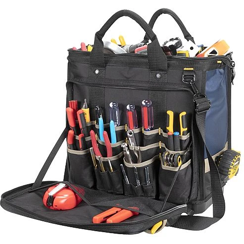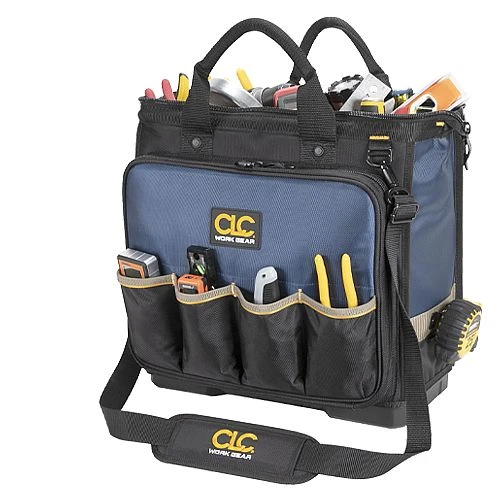 Spend less time searching for the right tool with CLCs 17 in Molded Base Technician’s tool bag. Its vertically aligned 54 pockets, keeps your tools organized and visible at all times. The dual zippered compartments fold down for access to multiple items and the large center section has enough room for power tools, hand tools, and accessories. These features paired with the durable 1680D ballistic polyester fabric and molded base design make CLC’s Technicians tool bag the perfect fit to carry to your next job.