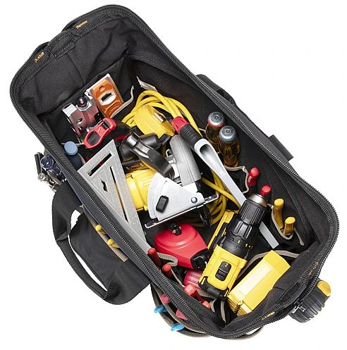 CLCs 19 Molded Base Contractors Closed-Top Tool Bag is the ultimate tool carrier for trades pros, installers, maintenance and more. This heavy-duty carrier is designed with a spacious main section that pops-up for more vertical room and metal zipper pullers to hold larger tools, circular saw and a hard hat in one place. Durably constructed with a double-stitched tape bound molded base, this Contractors Bag has reinforced strength for heavier lifting, yet light enough to carry to the job.