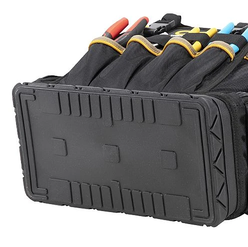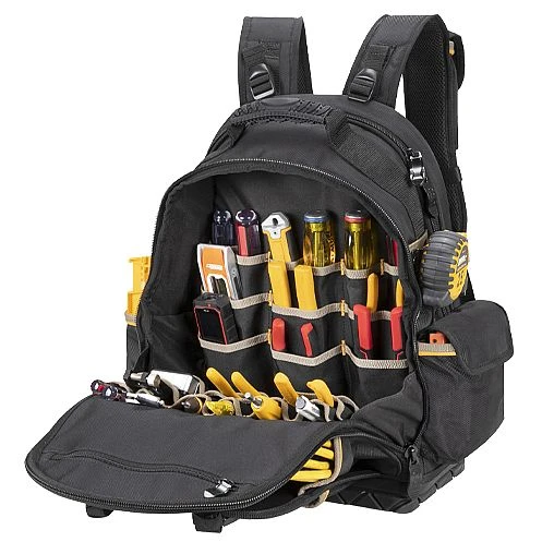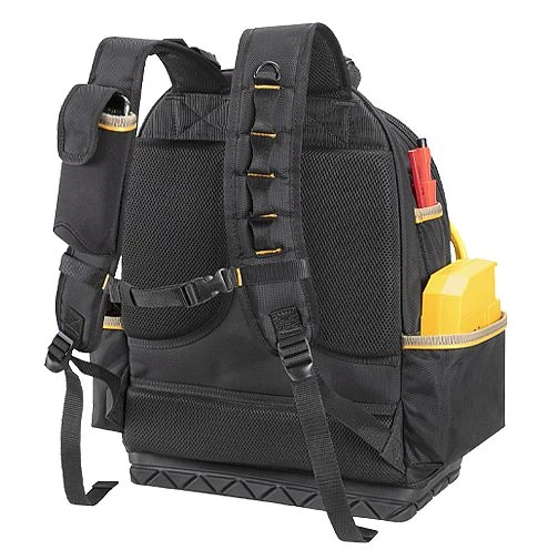Tool carrying just got easier with CLCs Molded Base Tool Backpack. Durably designed for longer wear, this heavy-duty bag is constructed with 1680D Ballistic Poly and a molded base for longevity. It features ample room for tools, two large zipper compartments, a padded section to store electronics/valuables, 38 reinforced pockets, cell phone holder, tape measure clip and 3 foam back pads for carrying comfort. This rugged quality, multi-functional CLC backpack is a universal tool storage solution across the trades.
