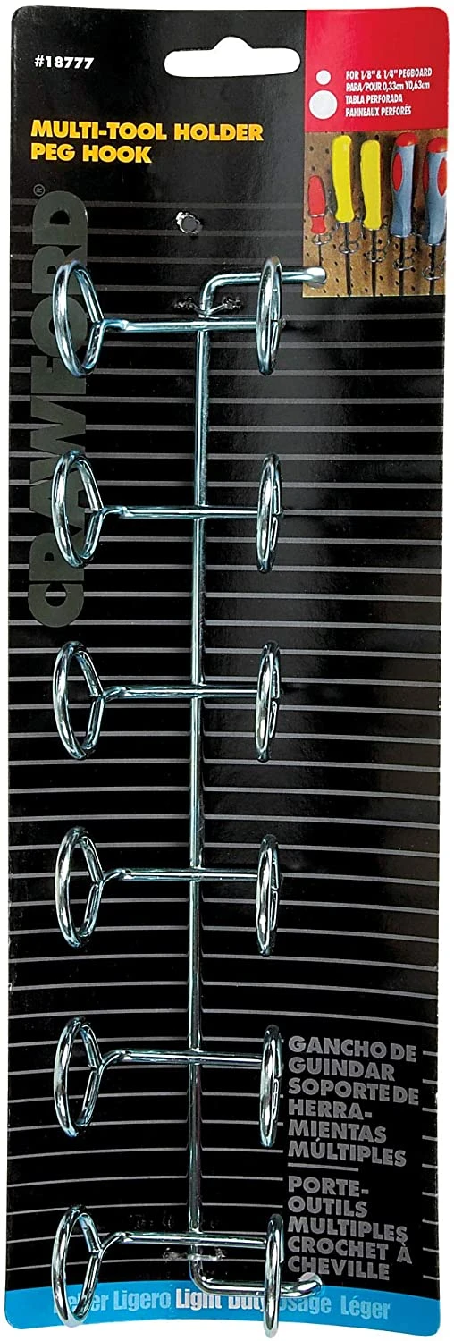 Holds up to 6 hand tools. For 1/8 in & 1/4 in Pegboard.