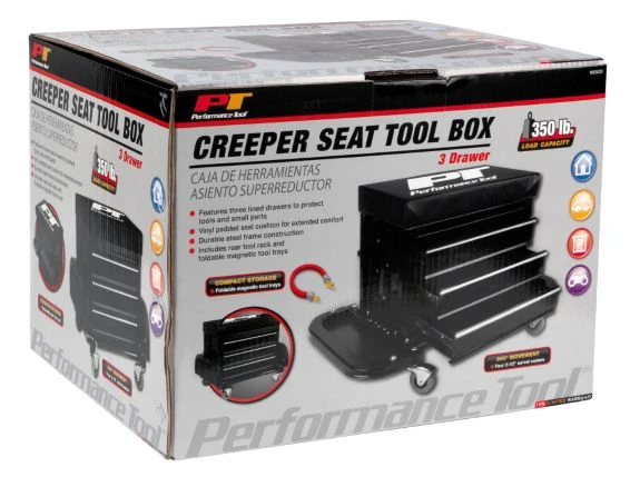 Black 3 Drawer Creeper Seat Tool Box
