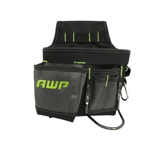 Keep your essential tools and fasteners organized and within reach with the easily accessible AWP Mini Carpenter Tool Pouch. Constructed with a rugged, water-resistant 600 denier polyester with 1680 denier reinforcement, this handy tool pouch includes 5 pockets and loops, a carabiner snap hook for attaching small tools or keys, a metal belt clip, and tunnel loop for tool belt attachment options.