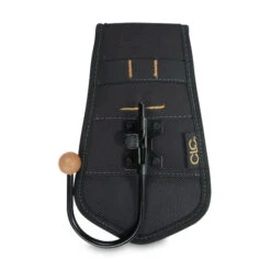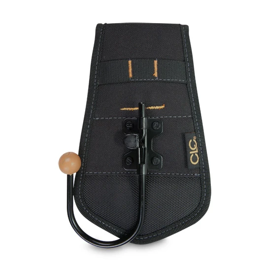 Our uniquely hinged, ball-capped hook conveniently holds most cordless drills and features 2 bit pockets and an elastic sleeve to help you organize your bits and accessories.