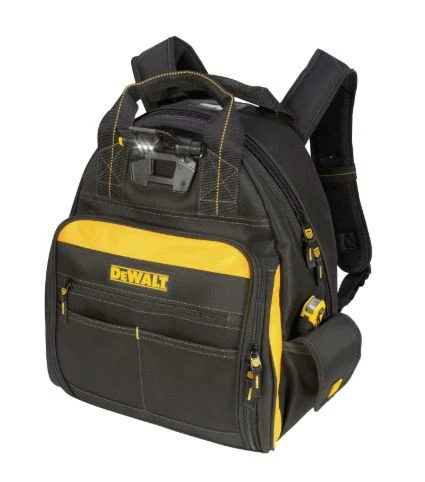 This tool bag’s LED light can be easily directed at work area or into backpack to help identify tools and parts. The 3 levels of light output allow adjustment for wide area illumination or close-up work and has an output of 39 lumens max. The tool bag has48 multi-use pockets inside and 9 outside to help organize your favorite tools, parts and accessories. The tool bag can hold a multitude of tools and accessories like drills, extensions cords, pliers, screwdrivers, wrench sets, drill bits, testers and much more. The backpack has large pads on back for extra comfort, padded web carrying handles and adjustable shoulder straps and base pad feet to help reduce wear and abrasion.