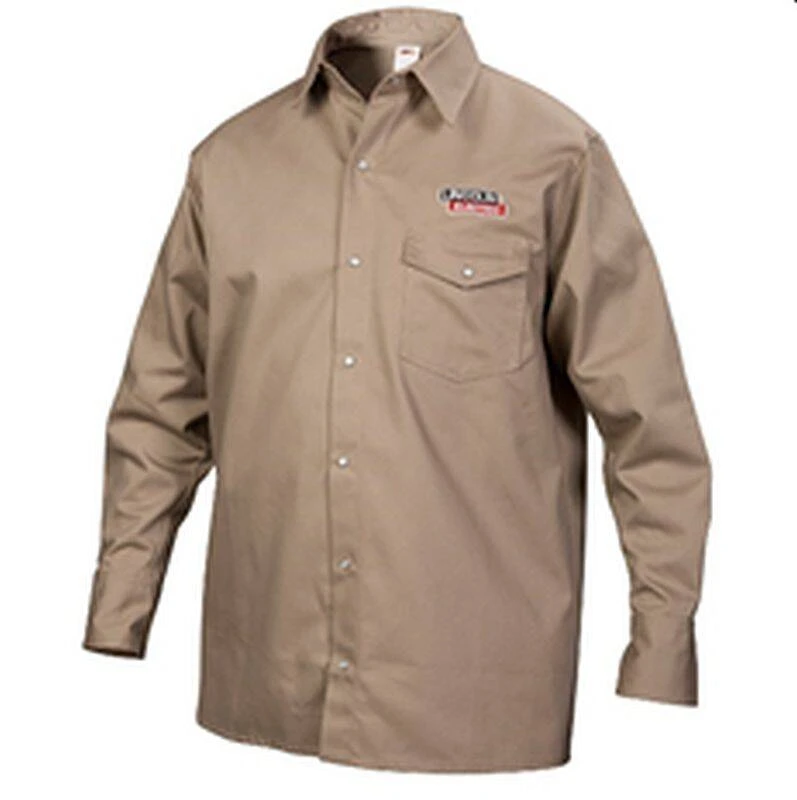 This 9-oz cotton 100% flame retardant material welding jacket offers protection for low amperage welding.