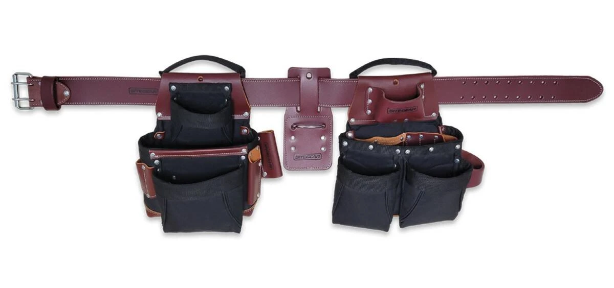 - Tough double-lined ballistic material with gusset design front pockets for easy access to nails and fasteners