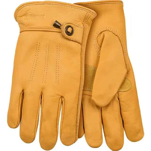Pull on. Lock down. Get to work. The adjustable pull-strap cuff design of these premium grain cowhide gloves lets you spend more time on work and less time fussing with the right fit. A suede patch on the palm reinforces your grip where you need it the most.