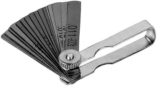 Hardened and tempered high quality steel blades. Marked in both SAE and Metric sizes. Knurled lock nut for easy blade selection. SAE Sizes: .011, .012, .013, .014, .015, .016, .017, .018, .019, .020, .022, .024, .025, .028, .030 and .032 in . Metric Sizes: .279, .305, .330, .356, .381, .408, .432, .457, .483, .508, .559, .610, .635, .711, .762 and .813 mm.