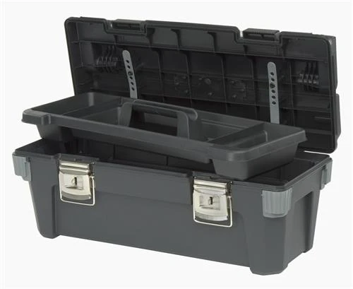 The STANLEY® Professional Tool Box is made with rubber shock-absorbing corners to reduce wear and tear on the box as you move it around and prevent abrasions to the surroundings. Its heavy-duty metal latches are extra large and have padlock eyelets to help keep your tools safe when they’re not in use.