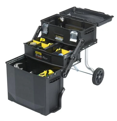 The FATMAX® 4-in-1 Mobile Work Station is rugged, multi-tiered and features four convenient storage solutions to accommodate all types of tools and parts. With this handy lockable tool box, you can stay organized and bring all the supplies you need to your job site in one easy trip.